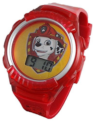 -. Binding : Watch -. Brand : Paw Patrol -. Department : Unisex-child -. EAN : 0030506400486 -. Feature : Red look for Marshall with a large Marshall on dial / Band adjusts with a buckle clasp from 5-7 inches to fit your child's wrist perfect with 7 holes / Durable window to handle any nicks / Paw Patrol gift box included -. Label : Accutime -. Manufacturer : Accutime -. Model : PAW4061 -. MPN : PAW4061 -. PackageQuantity : 1 -. PartNumber : PAW4061 -. ProductGroup : Watch -. ProductTypeName : WATCH -. Publisher : Accutime -. Studio : Accutime -. Title : Paw Patrol Marshall Kid's Digital Red Watch PAW4061 -. UPC : 030506400486
