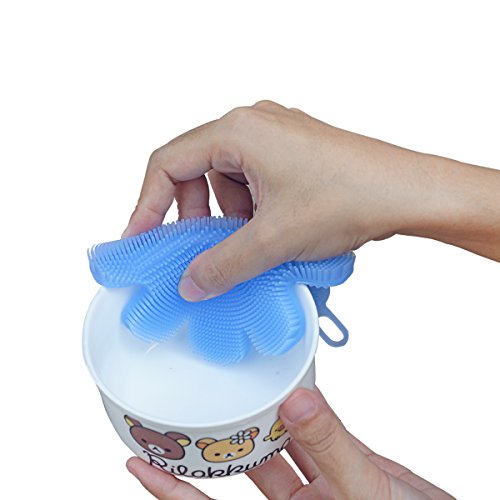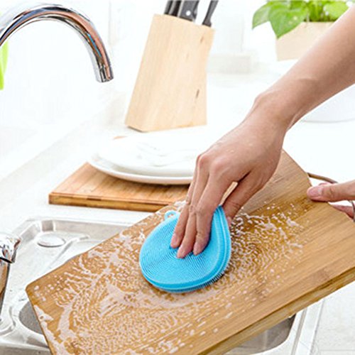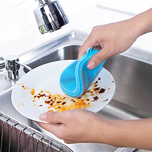 Gogoforward Silicone Dish Washing Sponge Scrubber Cleaning Antibacterial Kitchen Tools - Blue