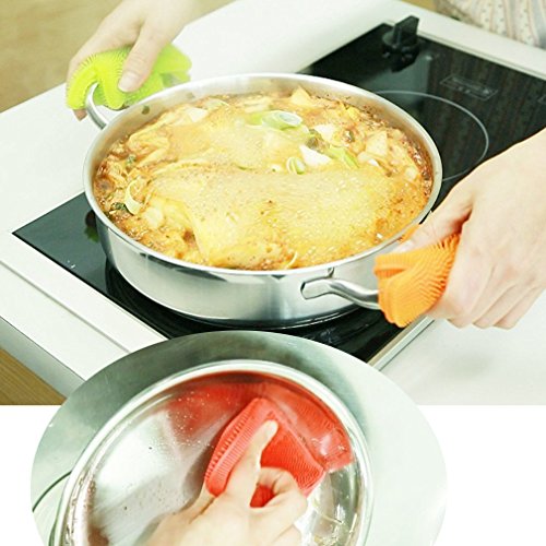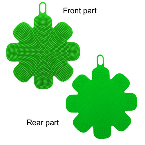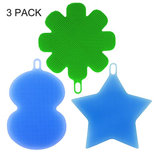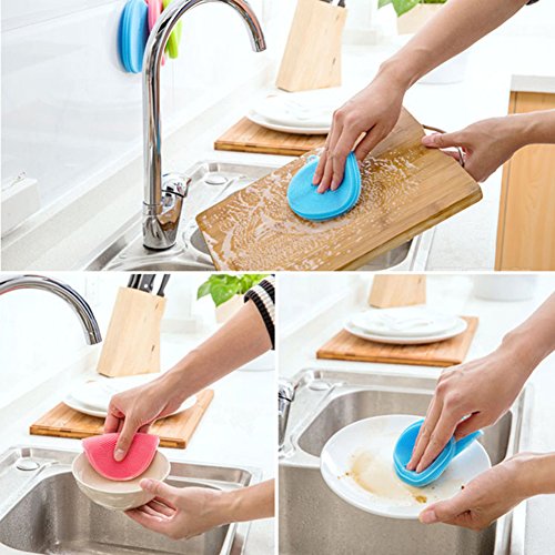 Anyback Food-grade Antibacterial Silicone Non Stick Dishwashing Dish Brush Sponge Towel Scrubber For Kitchen Wash Pot Pan Dish Bowl Wash Fruit and Vegetable 3 pack(Green+Bluex2)