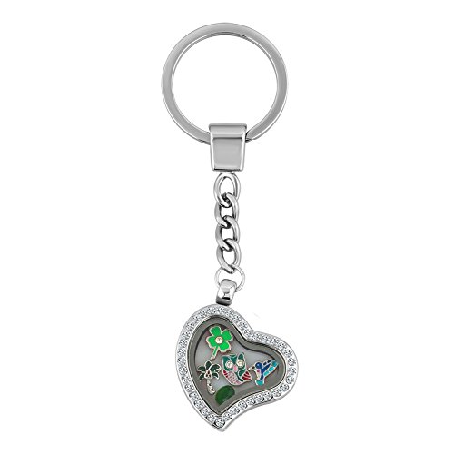 Q&Locket Lucky Owl Bird Animal Clover Floating Charms In Living Memory Glass Locket Key Ring Keychain