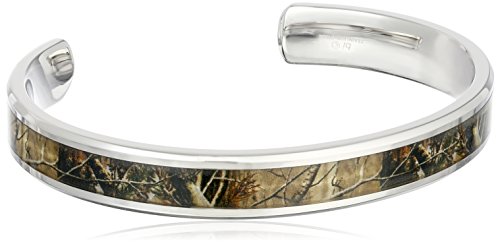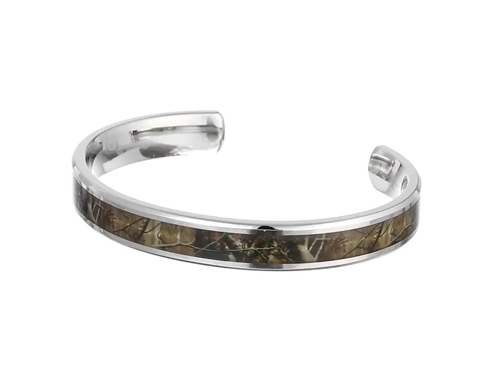 Men's Stainless Steel Camouflage Accent Bangle Bracelet