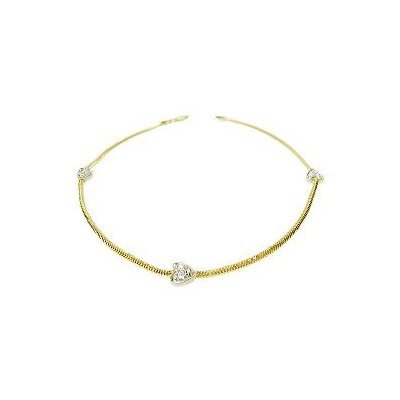 -. Title : 14K Yellow Gold Snake Anklet Bracelet 10'', with White Gold Heart Design Stations Set with Diamonds. (GH-Color, SI-Clarity, c.t.t.w.0.06CT.)