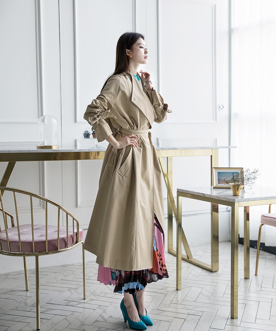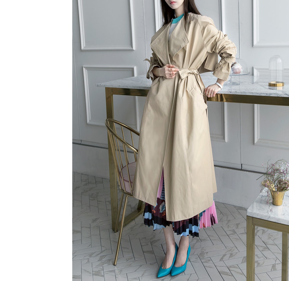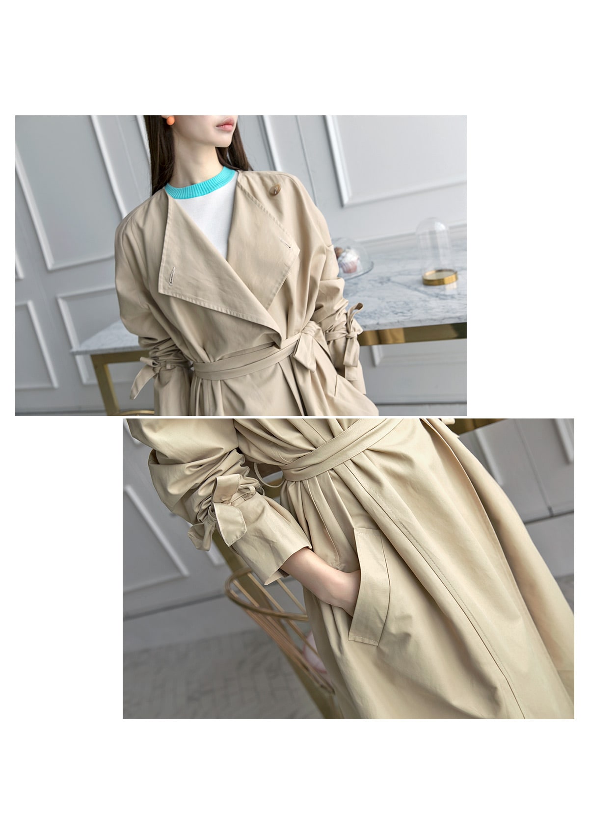 J-4866 멜르 스프링 트렌치 코트(벨트set) Beige