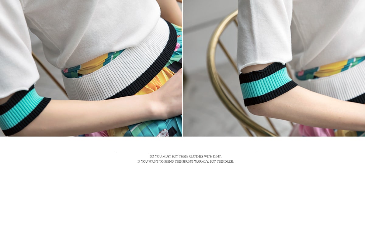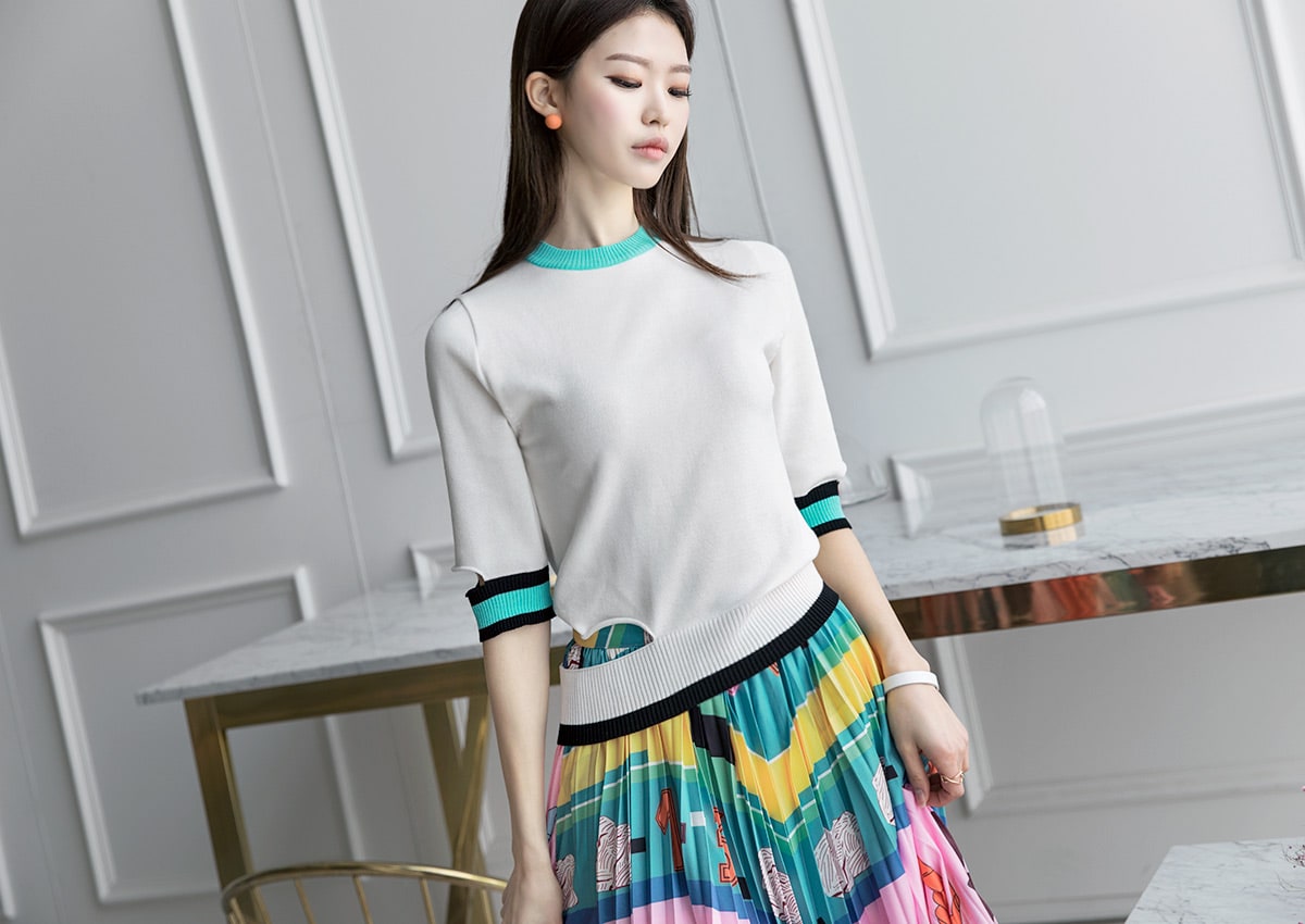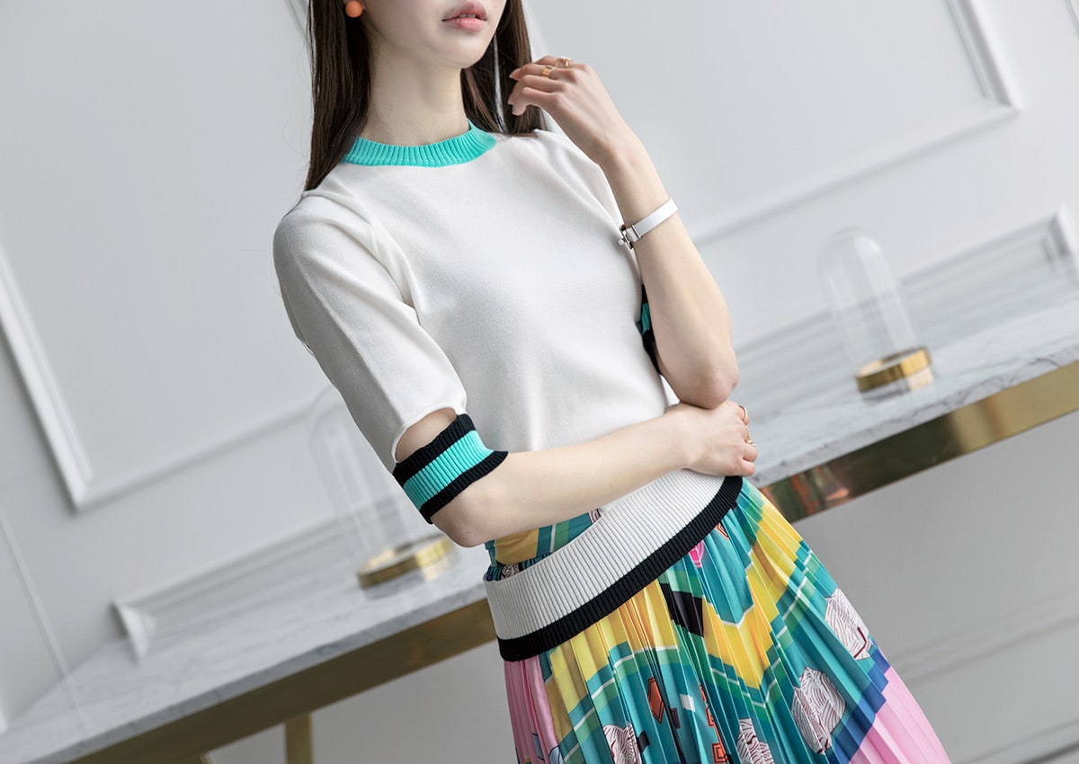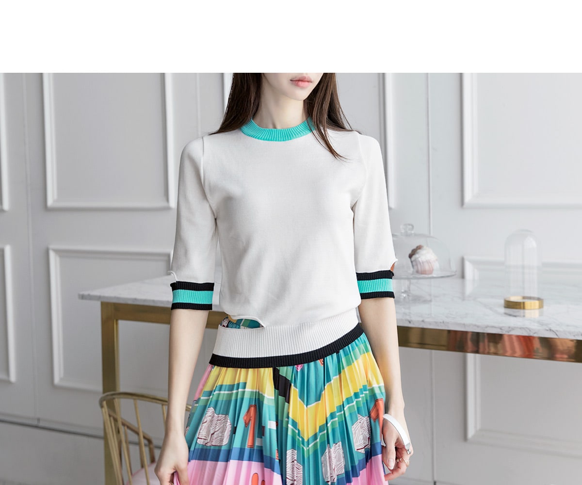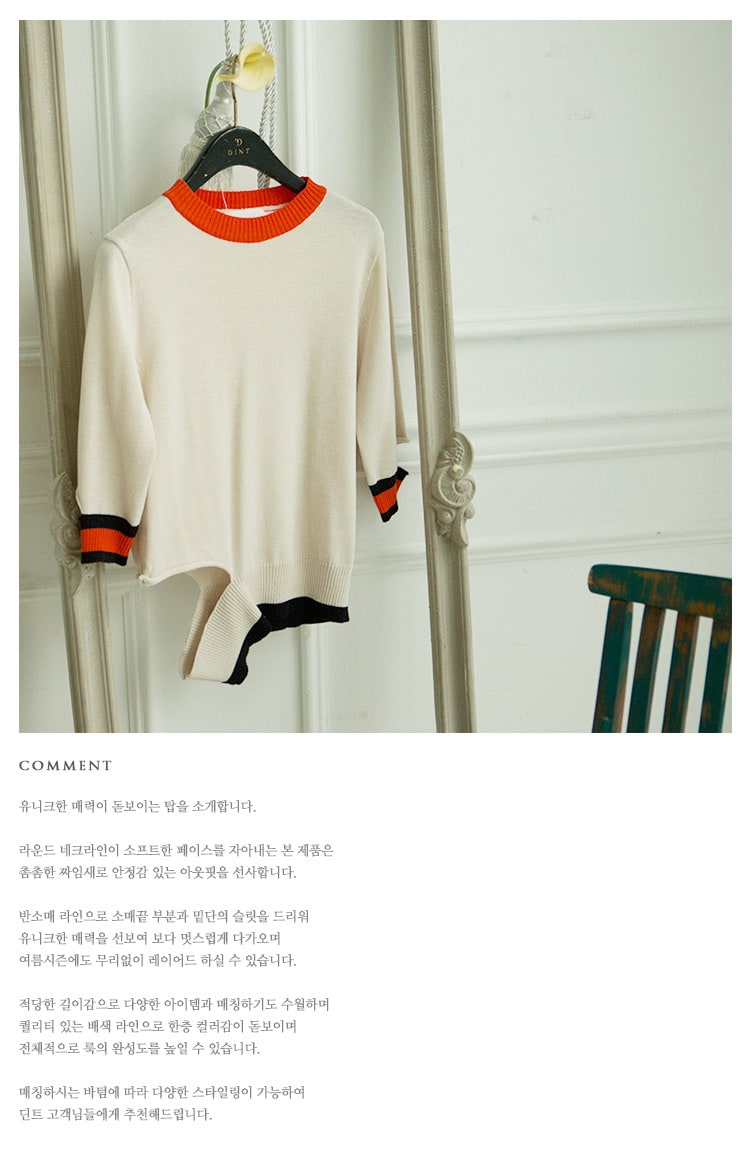 E1712 컬러 배색 유니크 슬릿 탑 Ivory mix