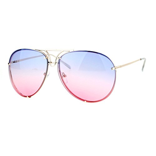 | (PASTL)/Accessories/Eyewear/DIRECT FROM USA/Oversized Round Aviator Sunglasses Gradient Lens Metal Rims in Back Spring Hinge |