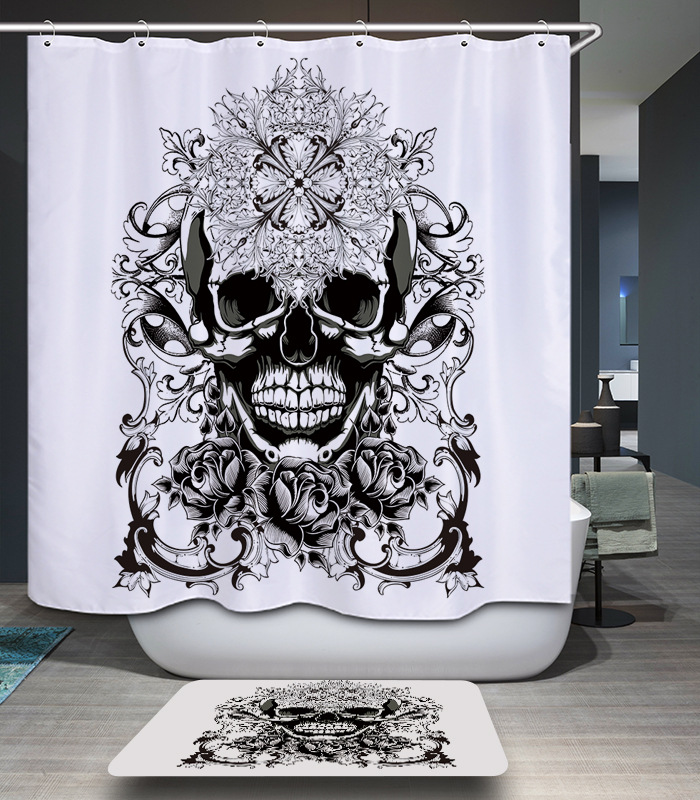 1 x Skull Head Shower Window Curtain(with Hooks)