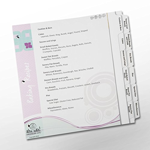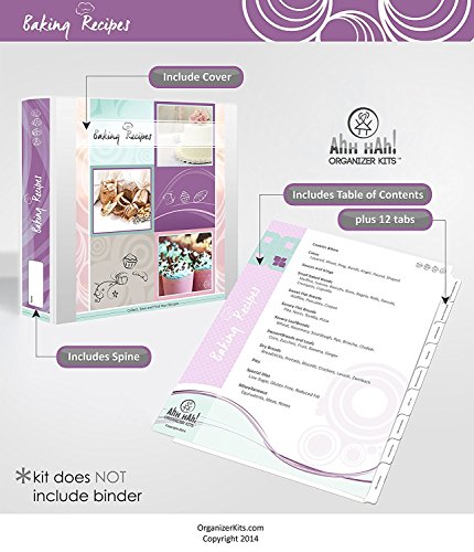 Baker's Recipe Organizer Kit: LONG Index Tabs for Three-ring Binder with Cover