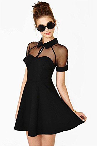 -. Title : (深セン アイビー詩) SZIVYSHI 女性のミニドレスメッシュカットアウトスイートハートネックライン半袖スケータードレス
