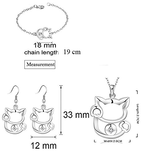 -. Title : Blue Crystal Cat Necklace Earrings Jewelry Set – Kitty Gift for Women Teen Girls Kids - Sensitive Ears