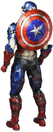 From square Enix. Clad in a star-spangled red, white and blue, captain America is the embodiment of patriotism. His iconic costume gets square Enix's distinctive variant touch and is rendered in the form of a protective armor to showcase and elevate his awe-inspiring presence. His signature round shield maintains its classic colors, and can be placed either in his hand or on his back with ease. The joints have a wide range of motion for dynamic posing, including wielding his shield as a projectile weapon, giving you the option of recreating captain America's characteristic moves. The paintwork is very realistic as well, evoking the gritty situations cap had gone through: chipping of the paint from fierce battles, burn marks from explosions, remnants of dirt and grime. These elements and a modern interpretation of the character takes this action figure to another level! figure includes display stand.Feature
