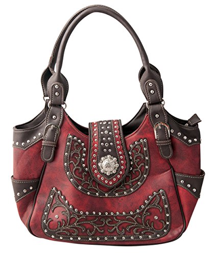 HW Collection Western Purse Concho Buckle Scroll Floral Rhinestone Concealed Carry Shoulder Bag Handbag