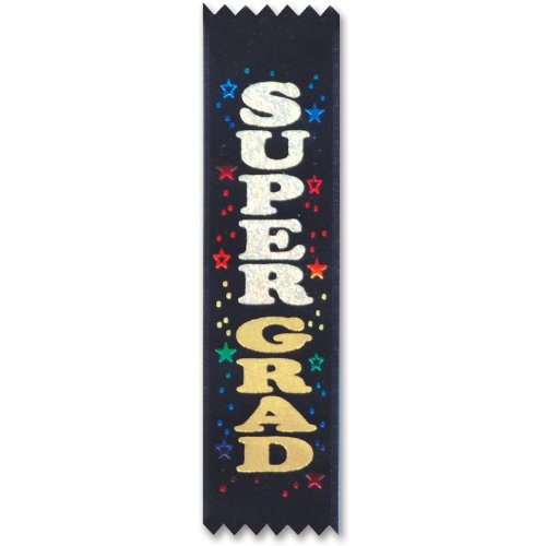 Studio : Beistle Publisher : Beistle Binding : Toy Product Description Give any grad our Super Grad Value Pack Ribbons! Features a black satin ribbon with the message "Super Grad" printed in silver and gold lettering. Measures 2" x 8". Includes 10 award ribbons per package. 0
