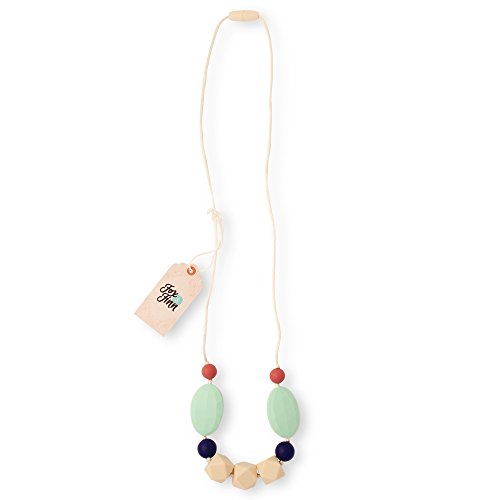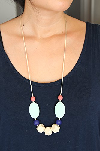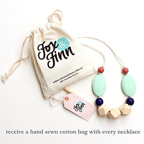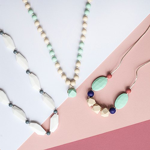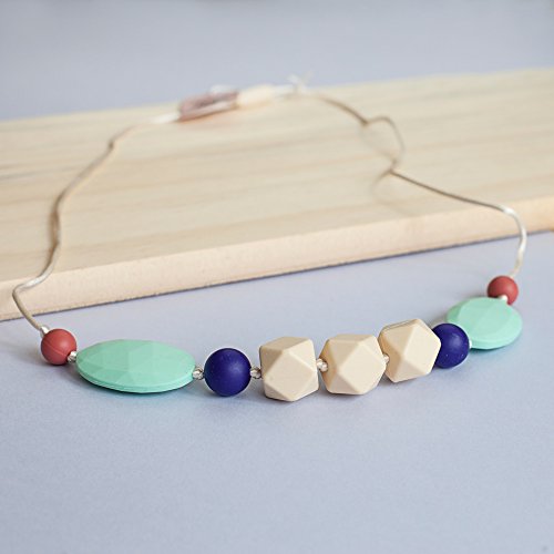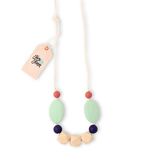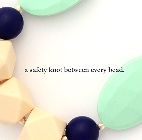 Fox and Finn 'Madison' Silicone Teething Necklace for Babies | Safety Knotted Silk Rope | Does Not Pull Out Hair | 14 Inch Drop (latte + cobalt + mint + marsala)