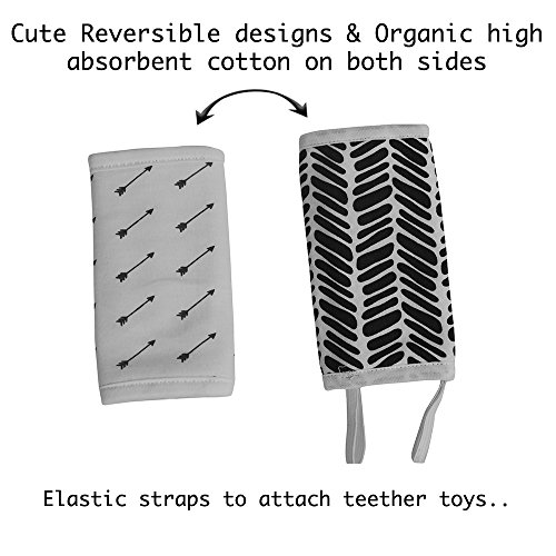 WILL STAY IN PLACE: Loops (At the top) and button holes (at the bottom) of the center piece help in securing the pad to carrier and prevent from flip-flop while getting baby IN-and-OUT as observed with others products. Shoulder pads have 2 hanging elastic straps to attach teethers, pacifiers, toys & more.
