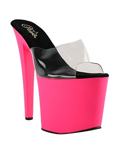 Product DescriptionHeel Height: Approx. 7 1/2' Tall. Platform slide high heel featuring ultraviolet reactive neon colored bottom.0