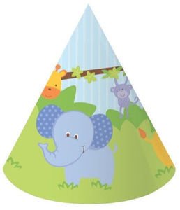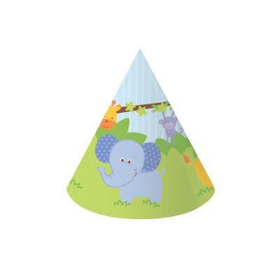 Product DescriptionJungle Friends Children's Cone Hats. One package of 4 Jungle Friends Children's Cone Hats. Made of Paper with elastic strings.0