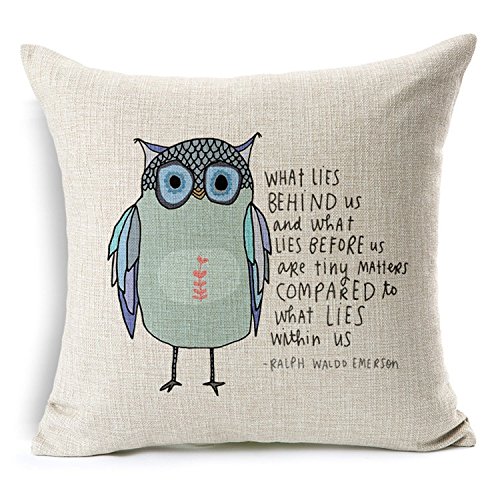 Decorbox Cotton Linen Square Throw Pillow Case Decorative Cushion Cover Pillowcase Owl Sayings (oil)