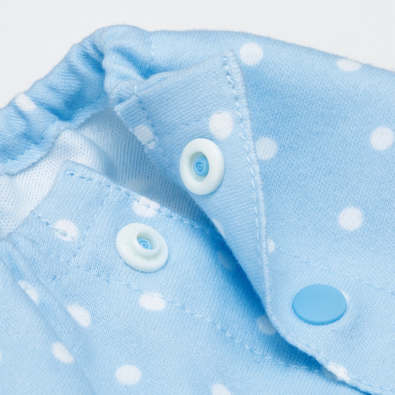 A snap is attached without needle thread.