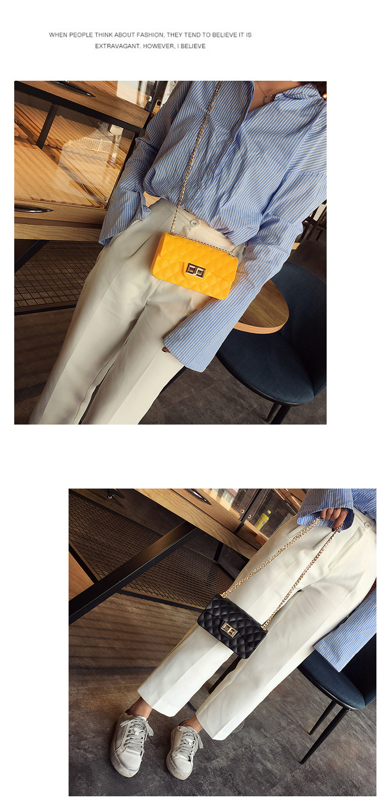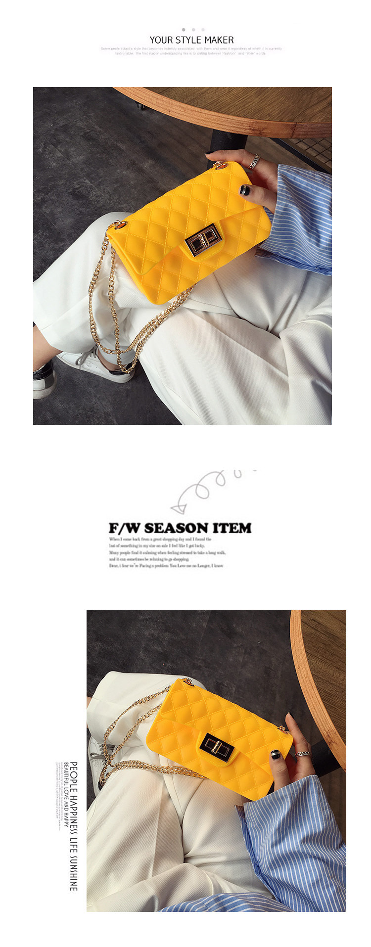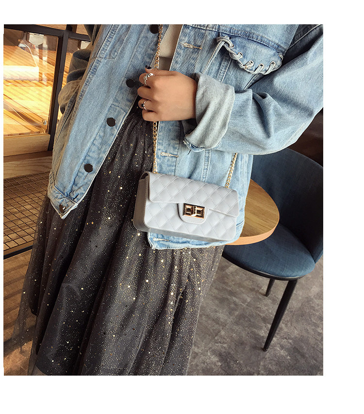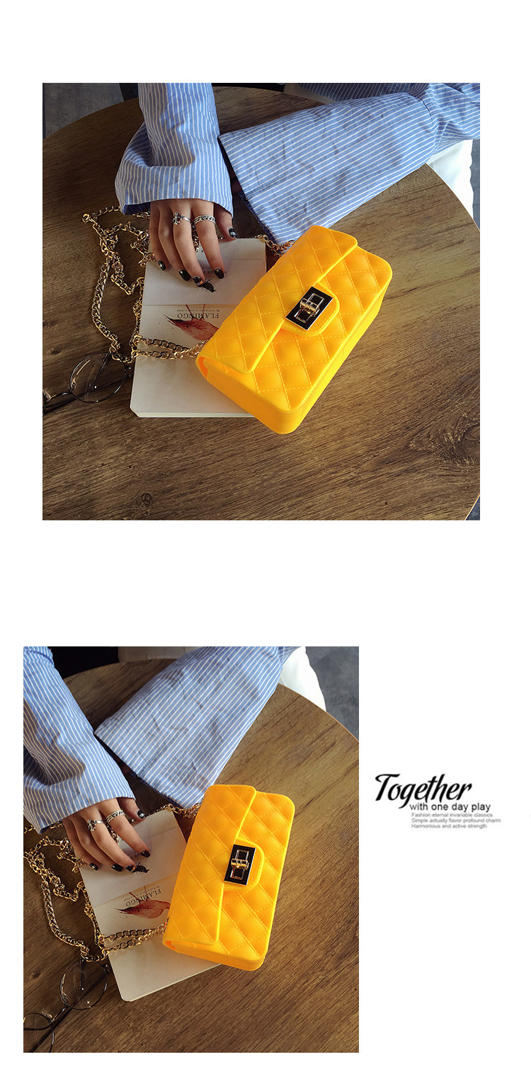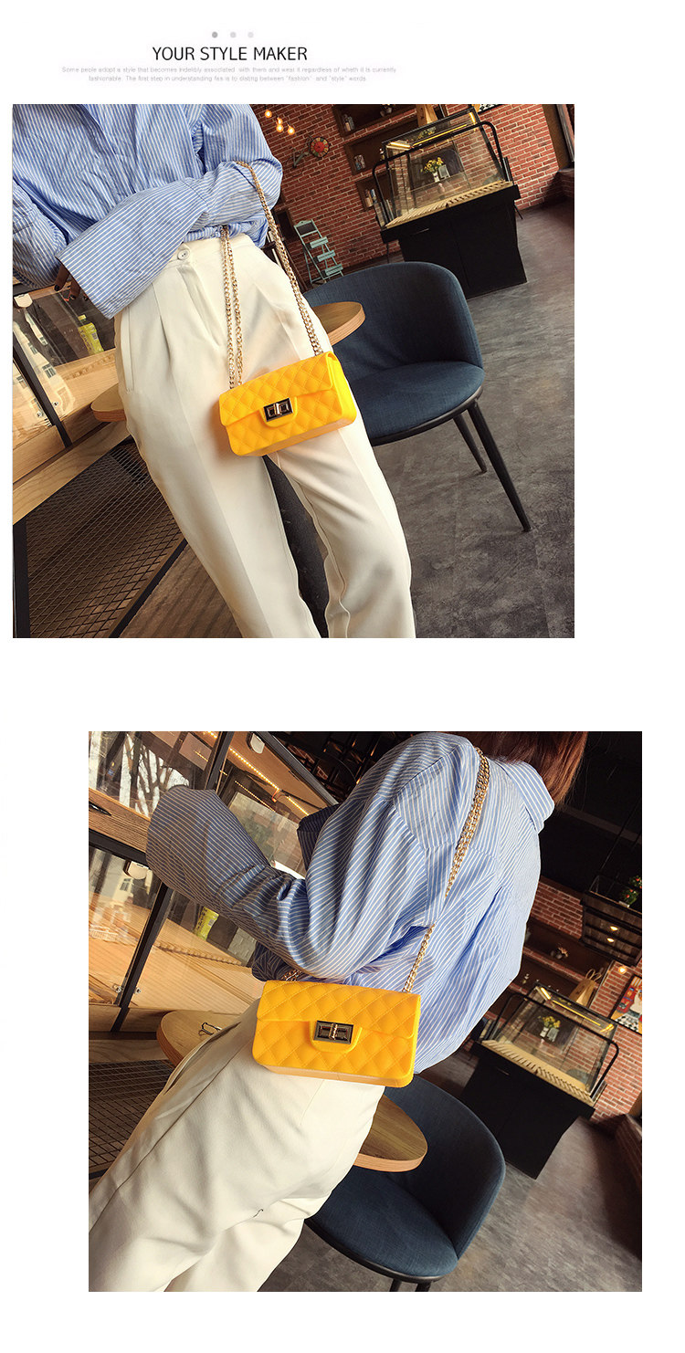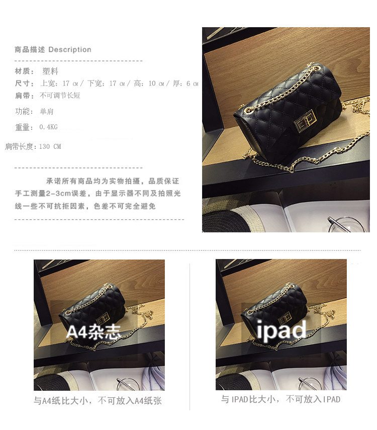 新款硅胶塑料菱格单肩包链条斜挎女包时尚经典翻盖小包果冻包