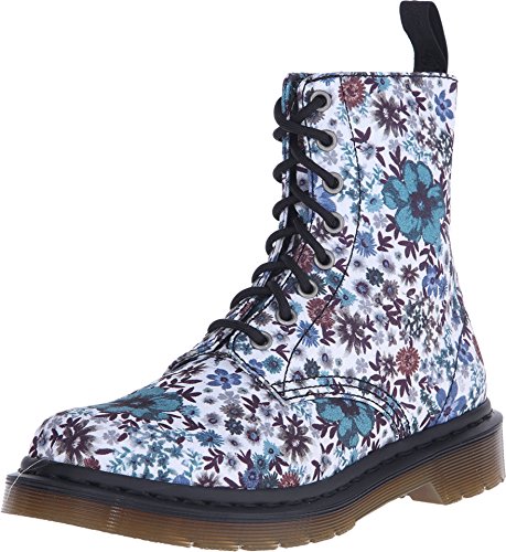 The new Page boots from Dr. Martens feature a contrasting floral design that revitalises the ever-popular 8 eye boot silhouette. With a hard-wearing canvas upper, lace up fastening with metal eyelets and the long-lasting Goodyear-welted and air-cushioned sole, resistant to oil, petrol and acid. Offering good abrasion and slip resistance. Material: Canvas.Feature