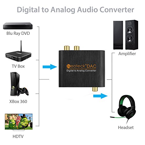 Neoteck DAC Converter Digital SPDIF Coaxial Toslink to Analog Stereo L/R RCA 3.5mm Jack Audio Converter Adapter with Optical Cable for PS3 XBox HD DVD PS4 Sky HD Plasma Blu-ray Home Cinema Systems