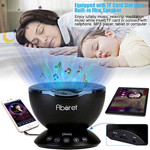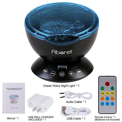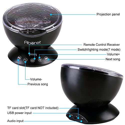 - [Latest Upgraded Ocean Wave Projector Night Light] It is Hypnotic Music Lamp, Atmospheric Projector, Card Readable & Sound All-in-One Device. This remote control hypnosis ocean wave mini projector nightlight can project colorful light on the smooth ceiling and wall, create a romantic, relaxation, cozy atmosphere. Not only it’s a light, but also it’s a gift, meaning our love to our children. My five-year old daughter love it very much.