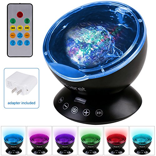 Wave Projector, Abcret remote control Ocean Wave Night Light with 12 LED &7 Colors and Built-in Mini Music Player in Living Room or Bedroom including Adapter(12 LED Black)