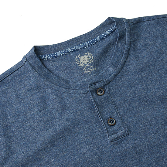 - 은은한 멜란지 컬러감으로 완성한 남성 숏카라 반팔 티셔츠.