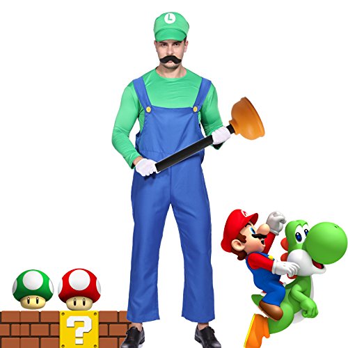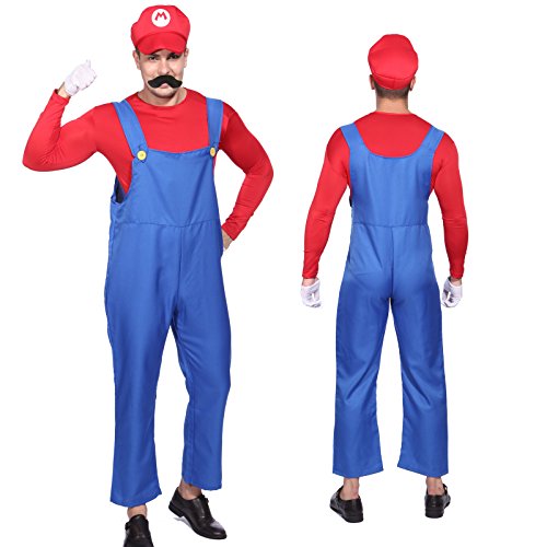 -. Title : 80s Mens Adult Super Mario Luigi Plumber Bros Workmen Game Fancy Dress Costume