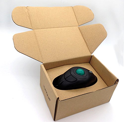 YUMQUA Y-10L Portable Finger Handheld Wireless Built-in Laser Pointer USB Trackball Mouse for Left/ Right Handed Users(Black) Laptop Lovers