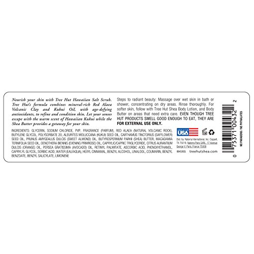 Nourish and gently exfoliate your skin with Tree Hut Hawaiian Salt Scrub. Tree Hut's formula combines mineral-rich Red Alaea Volcanic Clay and Kukui Oil, with age defying antioxidants that work to refine, condition, and keep skin healthy. Let your senses escape with the warm scent of Hawaiian Kukui while the Organic Shea Butter provides a getaway for your skin.