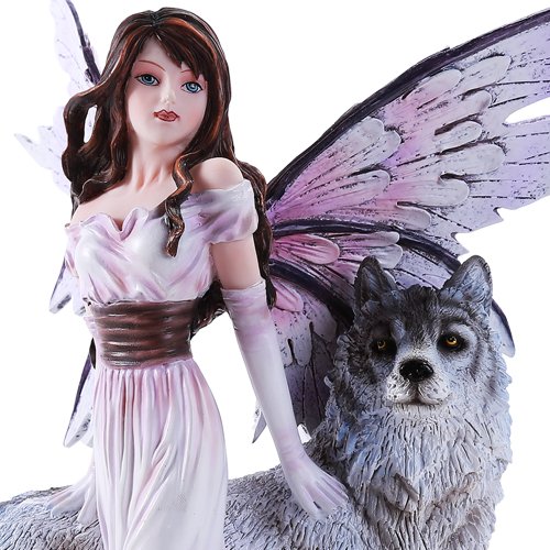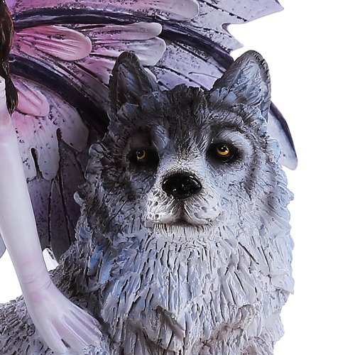 -. Title : Purple Winged Fairy with Lone Wolf 10.5 Inch Collectible Figurine
