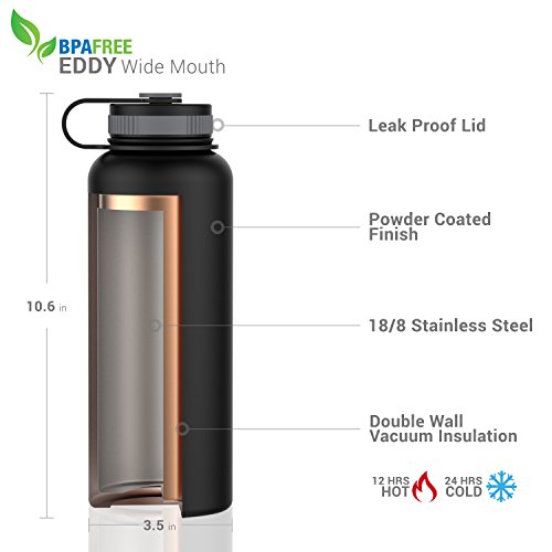 The wide mouth feature fits ice cubes and most filtration devices. Easily chill your drinks, fill up your bottle and reach crevices and corners when washing.