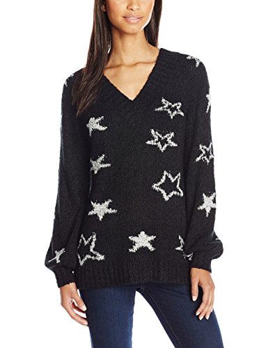 Star struck V-neck volume long sleeve knit sweater with star patterns