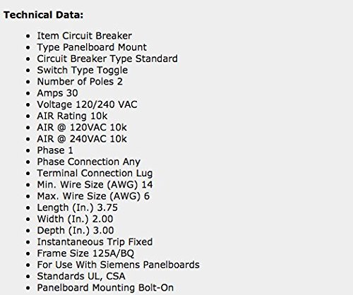 Siemens BQ2B030 - 30 Amp 2 Pole Breaker BQ Series Bolt On Breaker, 30a 2p, 120v - 240v 60 HZ, BQ2B030QXBPG