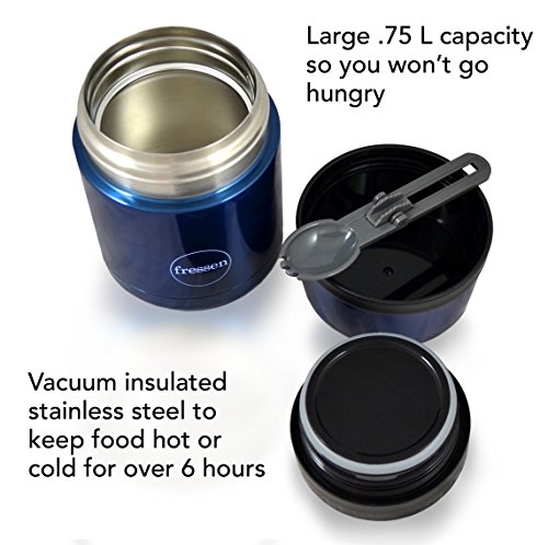 Fressen FoodGo Insulated Stainless Steel Food Jar with Folding Spoon, .75L, metallic blue