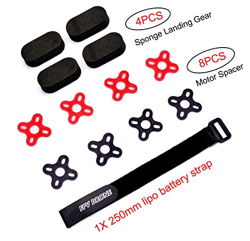 Brushless Motor Spacer Shock Absorber Pads Damper Vibration Damping Washer for FPV Racing 22xx Series Motors+Lipo Battery Straps 250mm+Sponge Mat Landing Pads