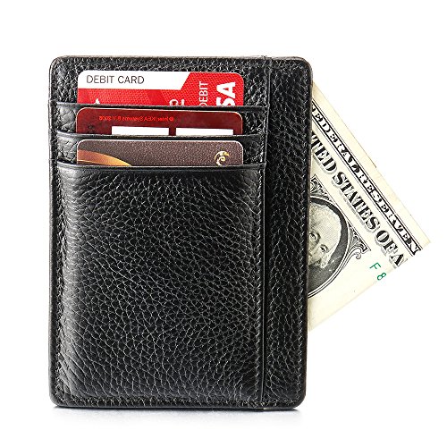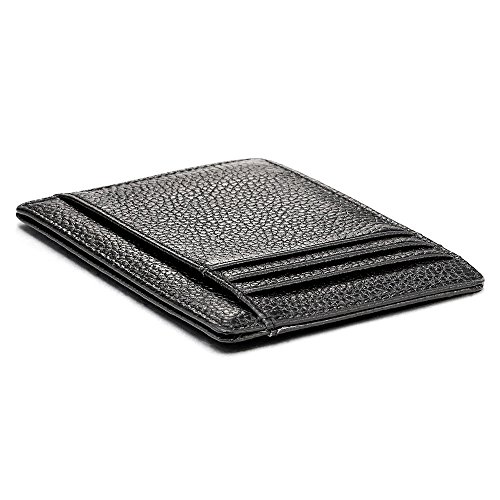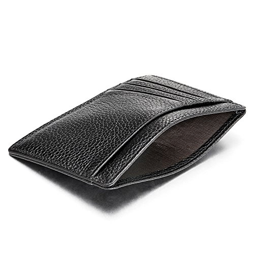 Product Description *Material: Genuine Leather; Color: Black *Measures: 4.61x3.35x0.22inch *Double-sided; Offers a total of 8 card slots, 4 on each side; Middle pocket for cash or cards *Slim thin. Perfect to slip into your pocket, briefcase or handbags *Timeless style for both men and women