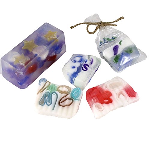 - Kit Includes: Glycerin Soap 4 Stars, 4 Hearts, And 4 Seashells, Colorful Squigglies And Ribbons, Approximately 2 lbs Of Soap (1 White, 1 Clear), 2 Stir Craft Sticks, Silicone Mini Loaf Pan, 8 Gift Bags, 8 Jute Ties, 8 Gift Cards, Spray Bottle (Just Add Your Own Rubbing Alcohol), Easy To Follow Instructions.