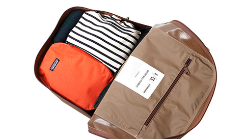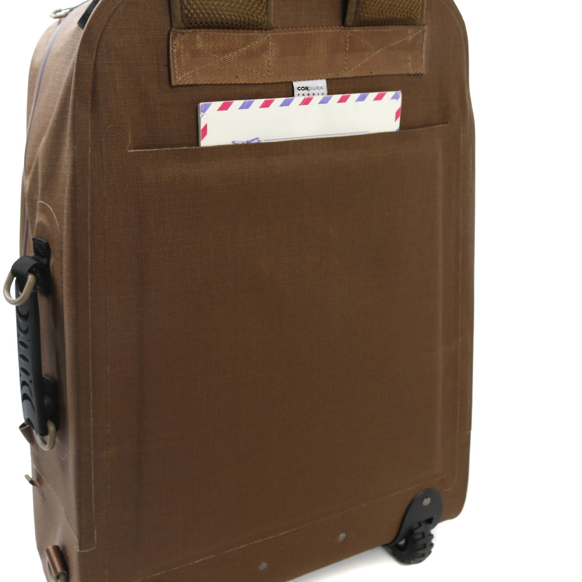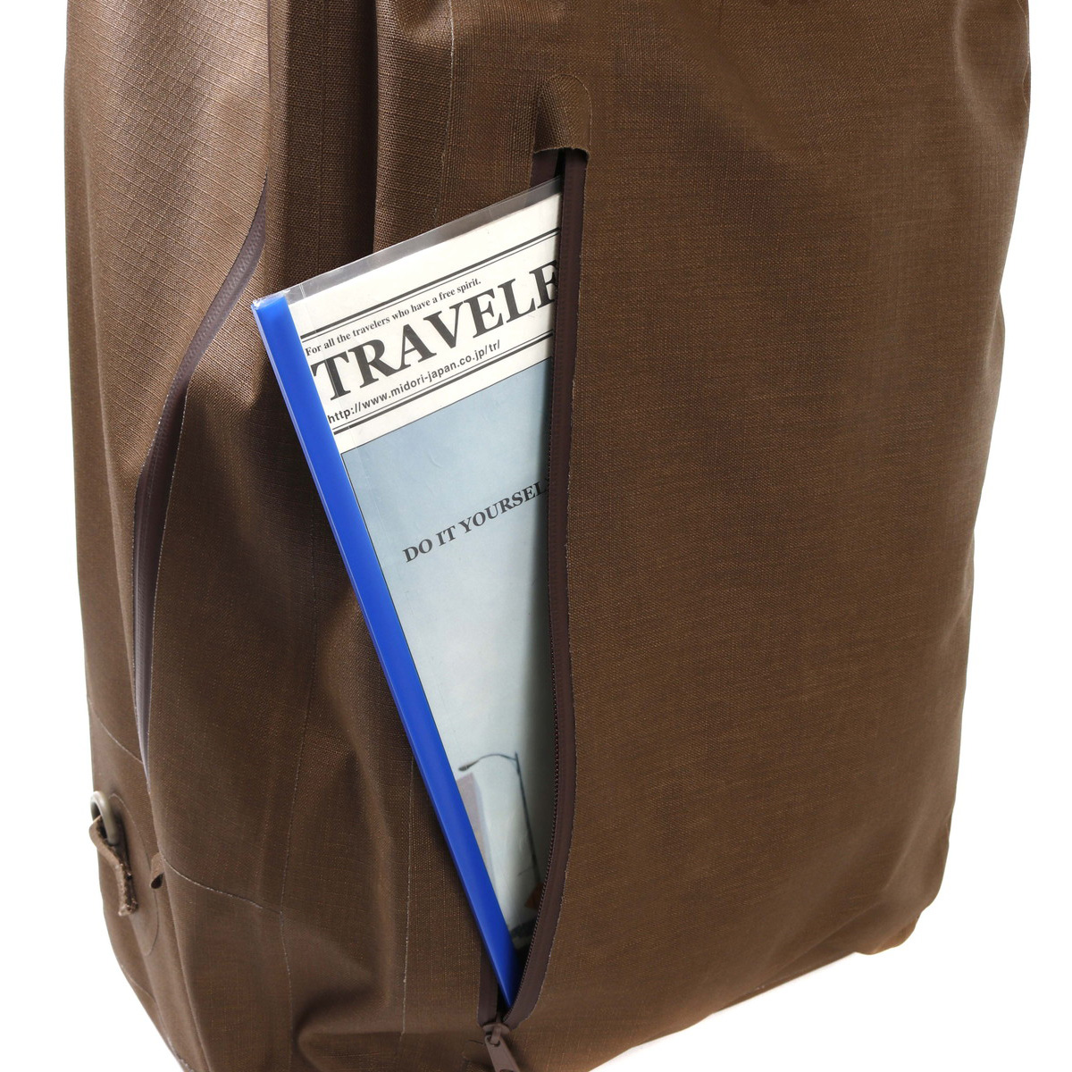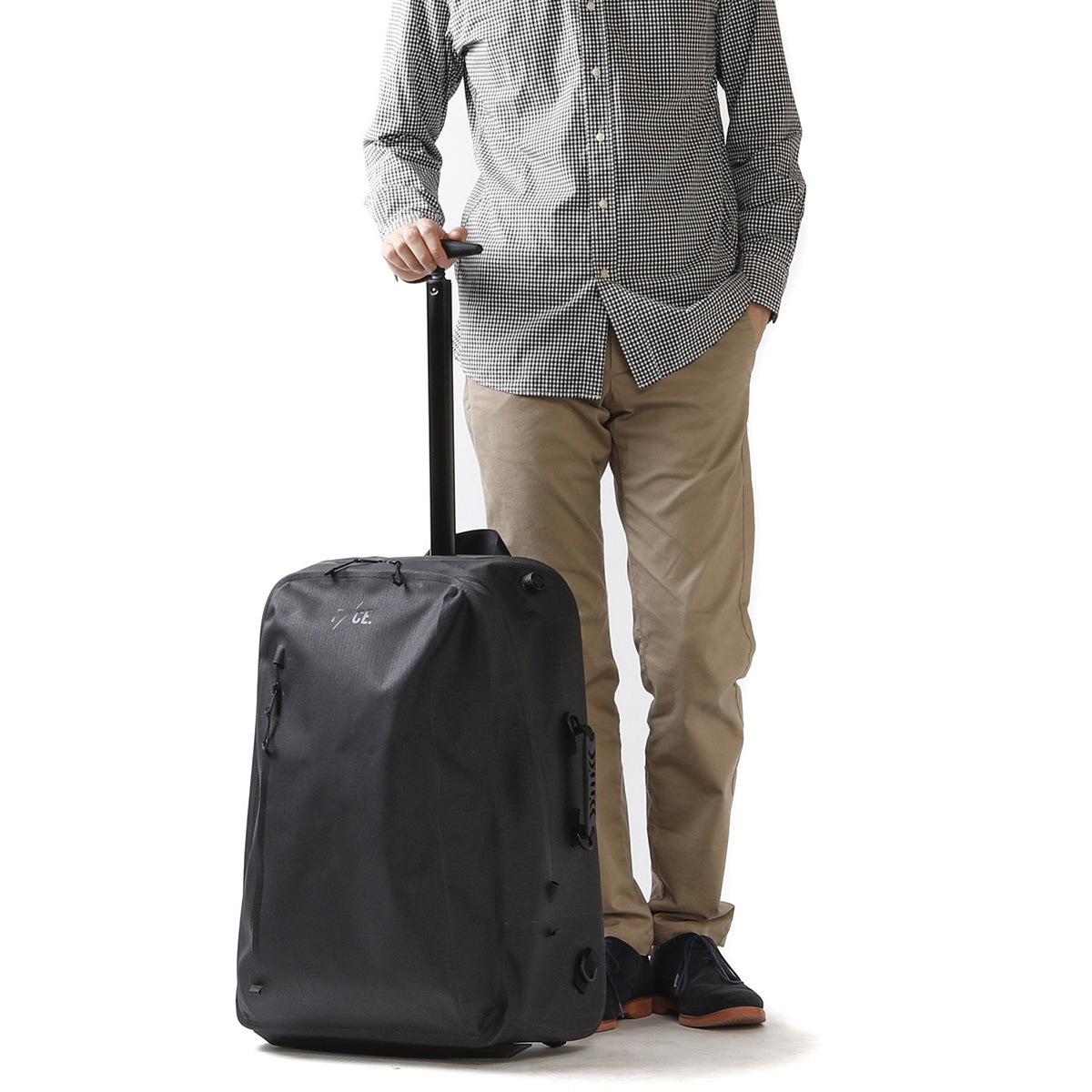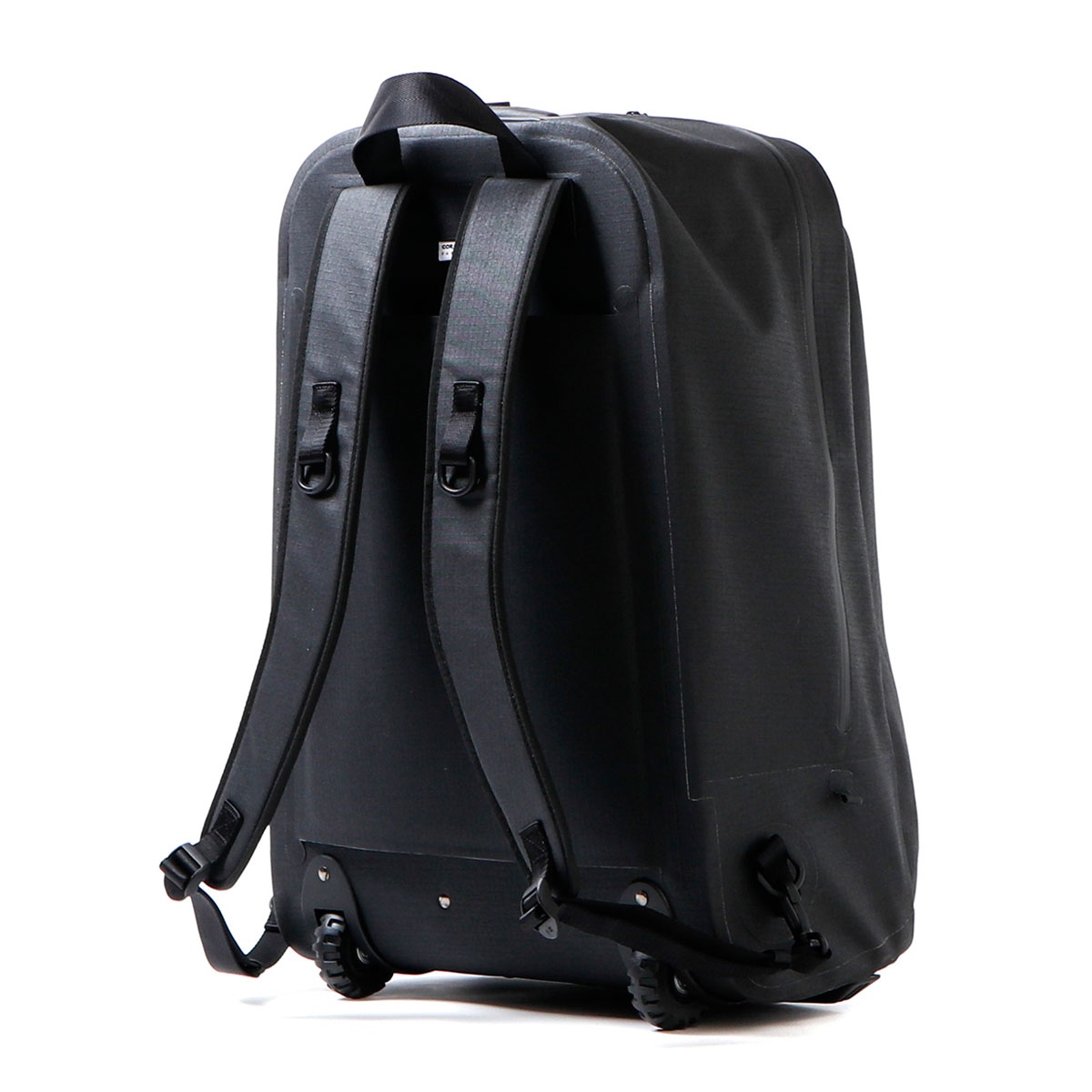Trolley case of "DRY LINE" with high waterproofness with no sewing making. Not only with the trolley, but with a strap on the back, it can also be used as a backpack 2 WAY specification. There is storage capacity to accommodate about 3 nights in large capacity size.