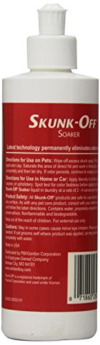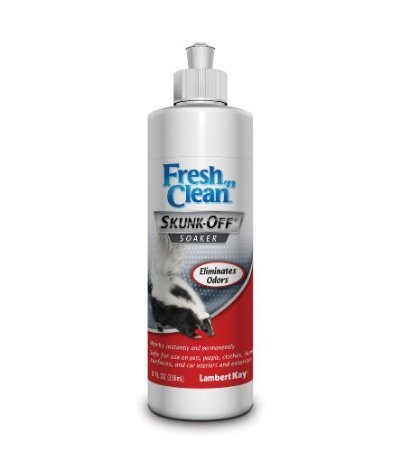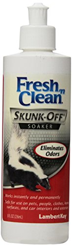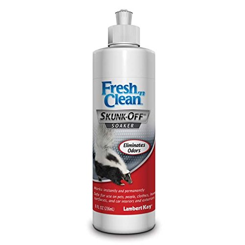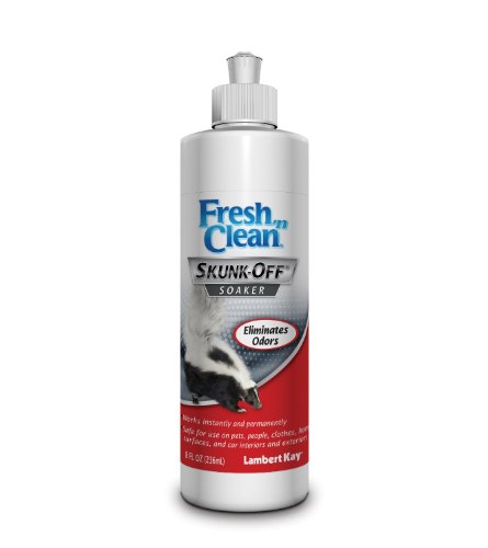 Studio : Lambert Kay Pet Products Publisher : Lambert Kay Pet Products Binding : Misc. Product Description Lambert Kay Fresh 'n Clean Skunk Off Soaker, 8 Ounces uses Skunk Off technology to permanently eliminate, not mask, skunk odors from pets, homes and vehicles. Eliminates odors using five unique modes of action unlike any other product on the market. The five modes of action are neutralization, absorption, bonding, inhibition and residuals. Neutralization changes foul odors to a neutral scent. Odor fighting molecules absorb odors preventing vaporization. Bonding agents chemically change the molecular structure of the odor to prevent a foul smell. Inhibitors stop biological decomposition to prevent odors. Long-lasting residual compounds stay active for continuous control and foul-odor prevention. This technology is so powerful it has been used in crime scene cleanup and in the veterinary market for years. It is now available to all through this product. Proudly Made In USA. 0