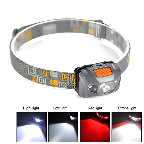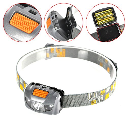 BORUIT RJ-W03 Mini CREE 1W 1200LM Headlamp Red & White Headlight Torch Lamp including 3 AAA Batteries for Cycling Hiking Camping Riding Fishing Running Hunting