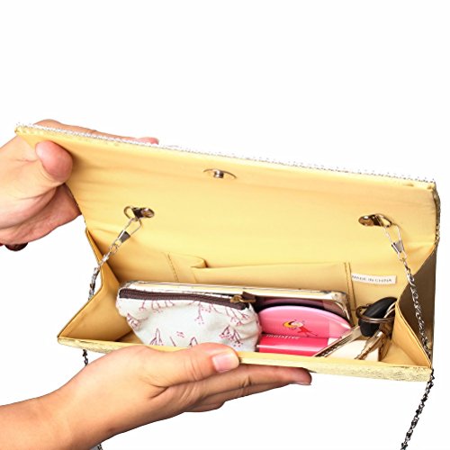 -. Feature : 1. DESIGN - This fashion satin rhinestone clutch purse is certainly make you the central of the world. / 2. CAPACITY - It's a super fashionable evening clutch that fit everything you needed (cell phone, lipstick, a few bobby pins, ID, debit card, cash). / 3. CARRYING OPTIONS - You can hold this evening bag in your hand or you can also use it as a shoulder bag with the chains coming with the bag. / 4. OCCASIONS - Great for wedding, party, prom, etc. Just get this clutch purse to have a wonderful night. / 5. GIFT IDEA - You can give this pretty evening bag to your friend or family as a gift for Valentine¡¯s Day, Christmas or Wedding Day.