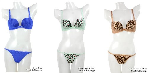 -. Title : グラマラス美乳ブラ&レーシーショーツセット ブルー レオパルドミント レオパルドブラウン 3色組F75(L)