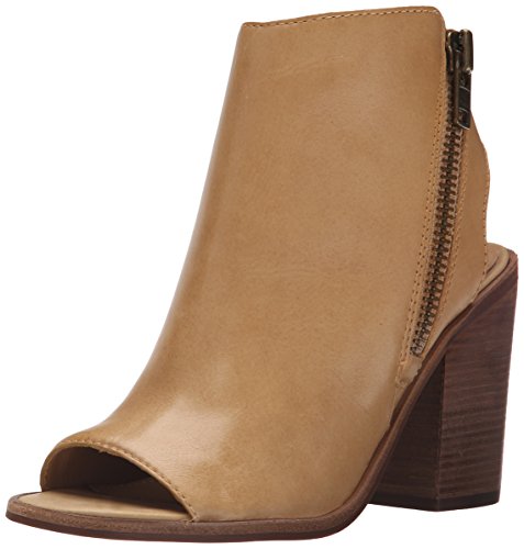 Block-heeled, slingback, peep-toe leather bootie with side zip detail