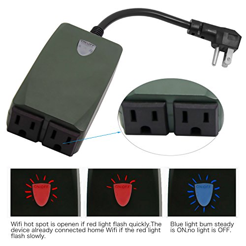 - √ WORK WITH ALEXA:Outdoor Outlet Works with Amazon Echo,Echo dot,Echo Show,Echo Tap Smart Speaker for voice and control On/Off,Timing and Timer by your IOS/Android Smart phone via free Alexa Socket Ⅱ APP.