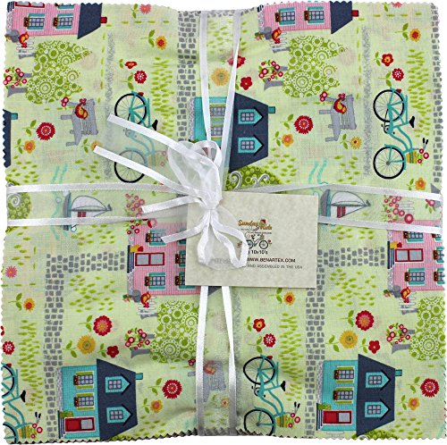 Benartex SUNDAY RIDE 10-inch Precut Squares Cotton Fabric Quilting Assortment Layer Cake Cherry Guidry