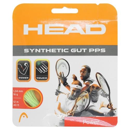 ReleaseDate : 2009-03-31 Studio : Head Publisher : Head Binding : Sports Product Description Combining all around playability with additional performance Head Synthetic Gut PPS provides a bit of everything all in one package Named for the PowerStrip Technology which is a Polyphenelyne Sulfide Strip this string provides added resilience and elasticity for extra power Synthetic Gut PPS features a special Pearl Polyamide coating to reduce notching and burning for added durability compared to most synthetic guts The string is constructed using a monofilament core with a layer of outerwraps combining good tension maintenance with a slightly softer feel for a better longer lasting string A good choice for players wanting a bit more power and durability from a synthetic gut and also players seeking an all around string for hybrid applicationConstruction Monofilament polyamide outerwrap PowerStripColor Gold Orange White Yellow BlueGauge 16 134mm 17 124mm 18 114mm 0