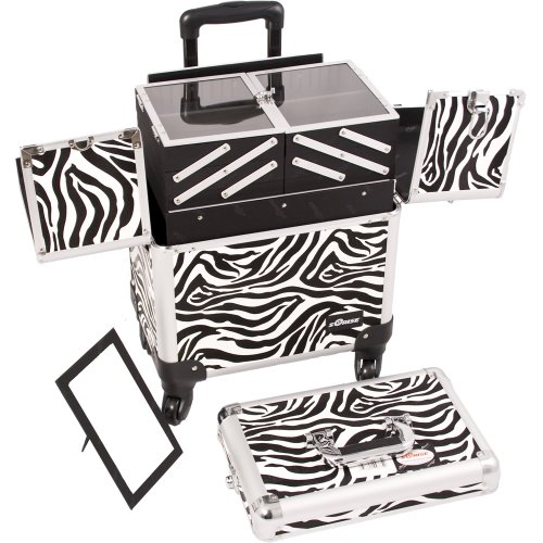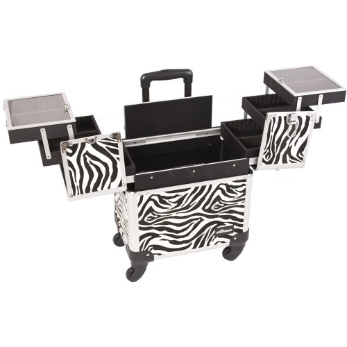 Sunrise Cittadella 2-In-1 Rolling Makeup Case Professional Nail Travel Organizer Box, Zebra, 20 Pound
