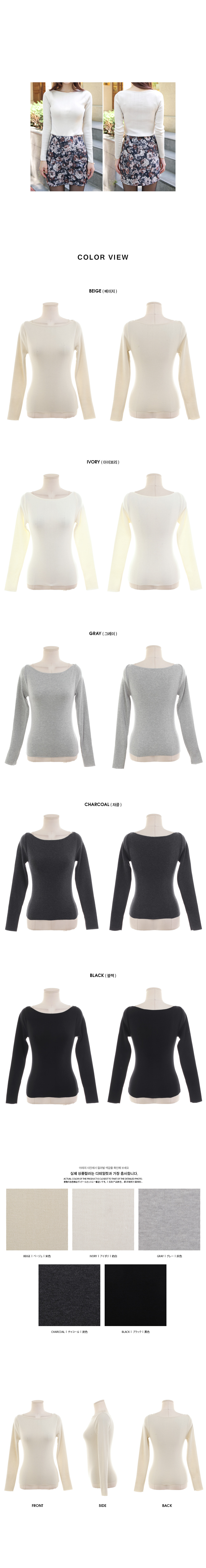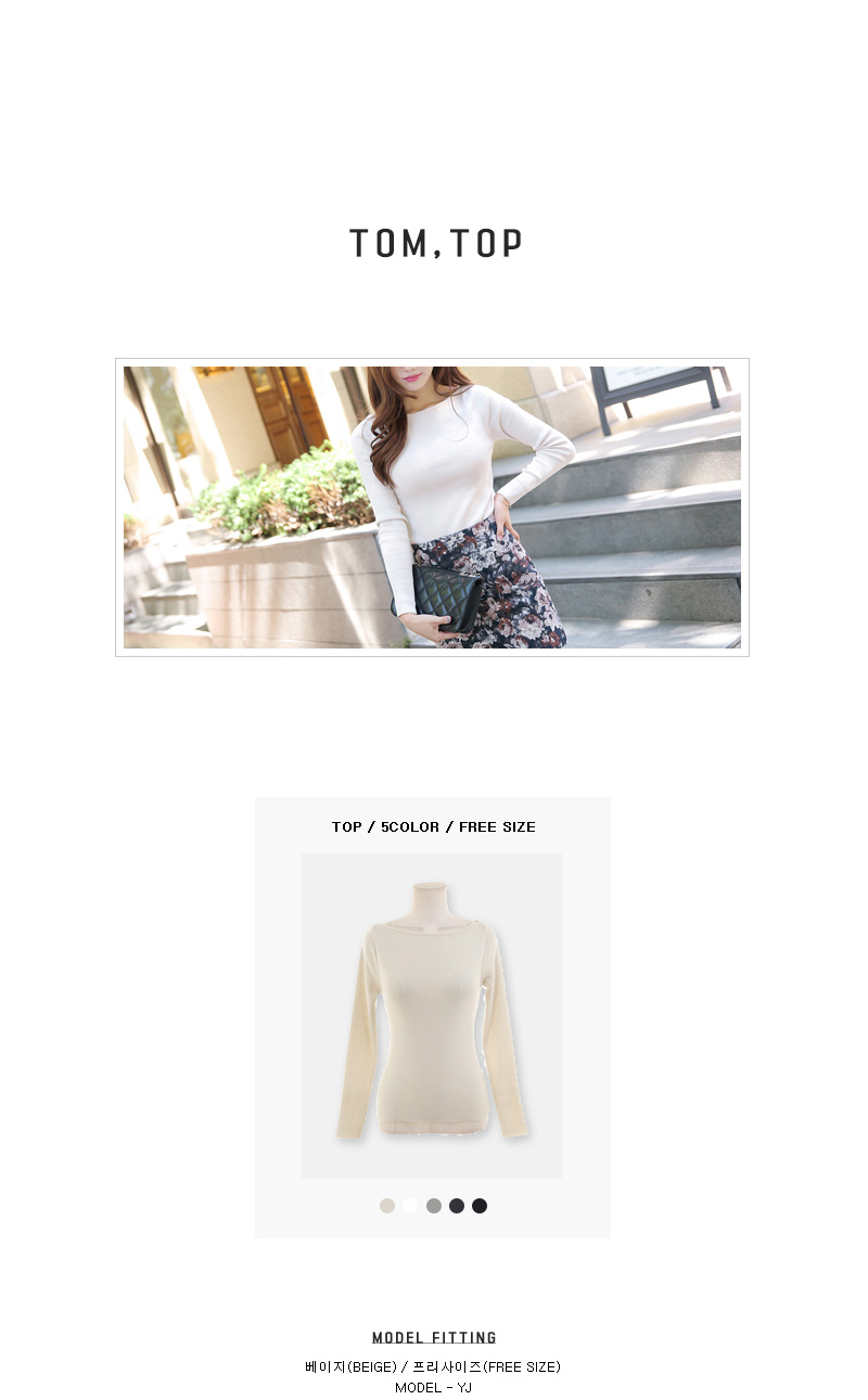 슬림한 핏감에 시스루한 니트소재감이 매력적인 입술넥 티셔츠를 소개할께요~ 슬림하게 핏되는 실루엣과 깔끔한 입술넥라인이 여성스러우면서도 다른아이템들과의 연출이 다양한 니트티셔츠랍니다. 전체적으로 슬림한 실루엣이지만 신축성 좋고 부드러운 니트소재를 사용하여 봄*가을*겨울내내 부담없이 레이어드하여 입을 수 있는 아이템이랍니다. 세련된 글램룩을 완성해주어 만족스러우실 거예요. 다양한 코디가 자연스러운 아이보리,베이지,그레이,챠콜,블랙 다섯가지 컬러로 구성되어있답니다. 베이직하면서도 시스루함이 매력적인 니트티셔츠로 다양한 데일리룩을 연출해보세요